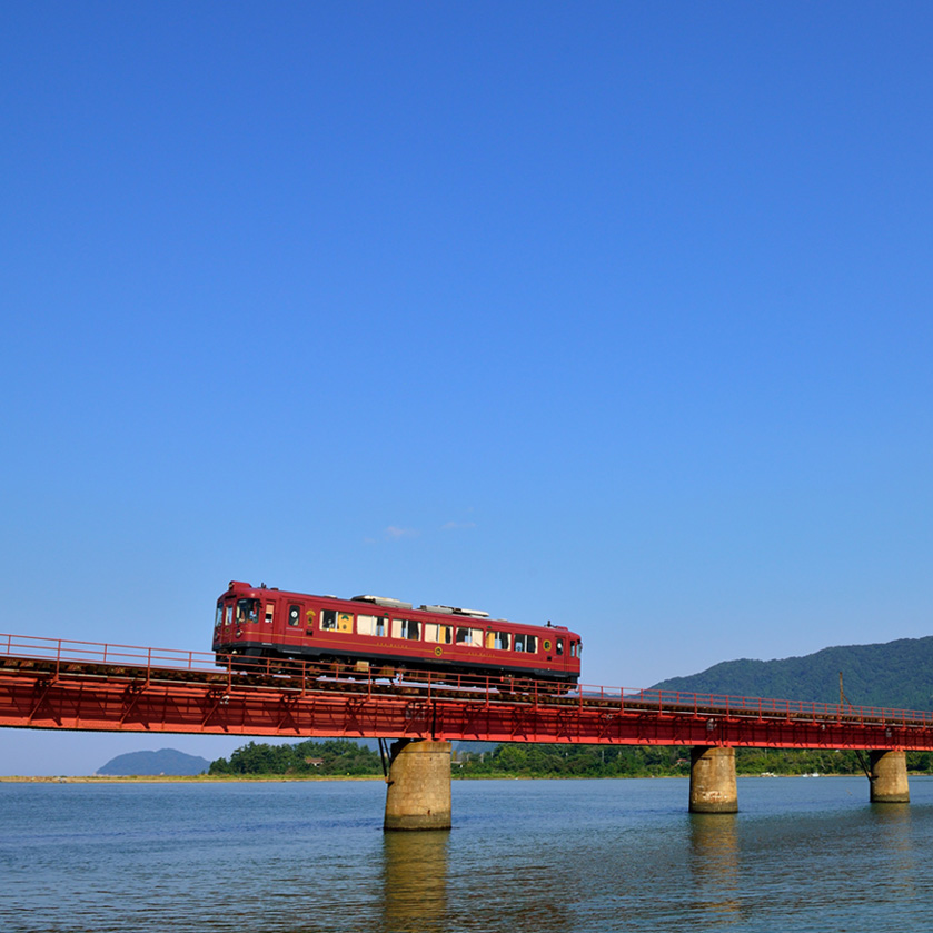 西舞鶴〜天橋立間を結ぶ丹後あかまつ号。白砂青松をテーマにした、木目の温もり漂う車内からは、日本遺産の由良川橋梁や奈具海岸の美しい景色を満喫できます。絶景ポイントでは停車や徐行もあるので、写真を撮りながらゆったりと過ごせます。