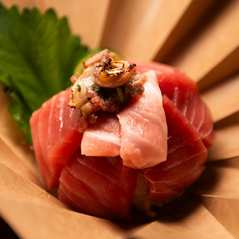 丹後産山田錦を100%使用した、「香田」をはじめとする宮津のハクレイ酒造が手がけるマグロに合う日本酒を提供します。ほのかな吟醸香と米の旨味、爽やかな酸の一体感が心地よく、マグロとも好相性。日常の喧騒から解放され、おちょこを片手に語らう優雅なひとときを。