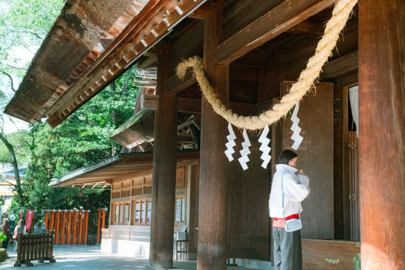 伊勢神宮の神々・天照大神と豊受大神が祀られた由緒から、「元伊勢」と呼ばれる古社。本殿高欄には、ここ元伊勢と伊勢神宮のみで拝める五色の座玉が輝きます。また、新月と満月の日にのみ授与される「産霊(むすひ)守」¥1,200も好評。2つを合わせると“明”の文字が浮かび上がり、希望に満ちた明日への祈りが込められています。