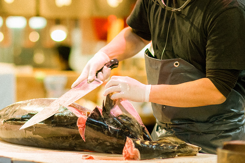 豊かな京都の海で漁獲される天然クロマグロの多様な部位を生かした料理を堪能。舞鶴の人気海鮮料理店・新鮮処魚里が、マグロ料理を提供。その他、地元水産会社によるマグロの解体シーンを間近で眺めるショーも開催。目にも舌にも喜びをもたらす至福の体験を。舞鶴かにも使用。